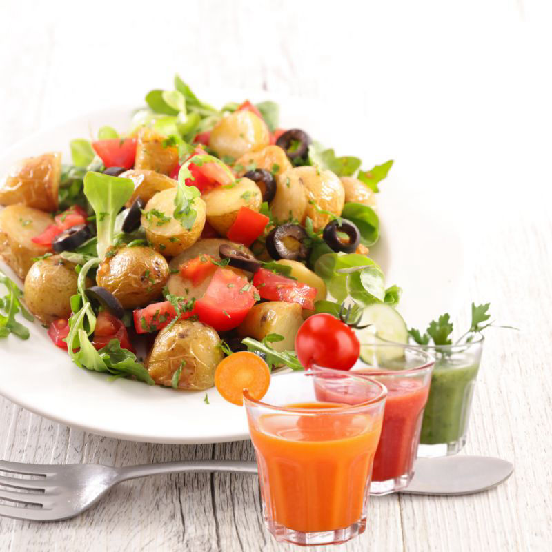 - Morgendlicher Früchteteller (roh/ gedünstet) im Wechsel mit verschiedenen Morgenbrei. Nach der Wanderung herzhafte Salate mit Pellkartoffeln, im Wechsel